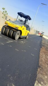 باستخدام مواد عالية الجودة لضمان متانة الطريق